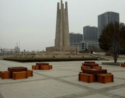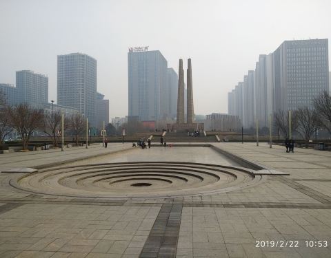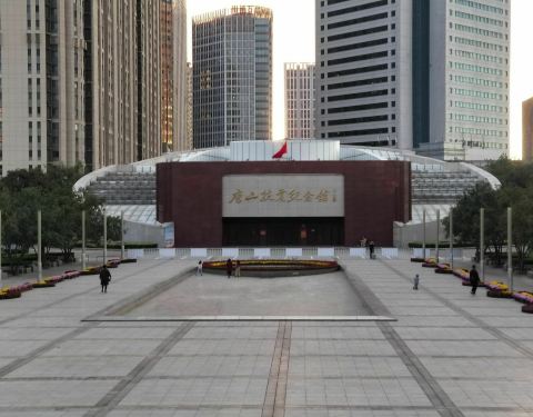 唐山抗震纪念碑广场位于市中心,北侧是百货大楼,西侧是万达广场。纪念碑的西边就是抗震纪念馆