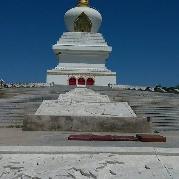 慈积金刚塔坐落于呼伦贝尔市海拉尔区敖包山山顶,建筑海拔744.7米,是由塔基、塔身、相轮、刹顶组成,有九层,塔高88.888米,塔基由汉白玉大理石砌筑三级多边形莲花座台阶,塔基99×99米,塔身高51米,32.8×32.8米,为钢筋混凝土结构。相轮29米高,为钢结构,外喷金黄色氟碳漆。顶端为刹顶,由日、月和宝瓶构成。项目占地1512平方米,总建筑面积5928平方米。