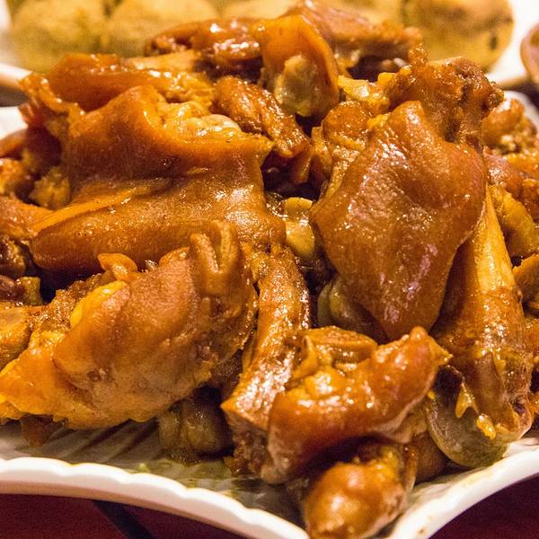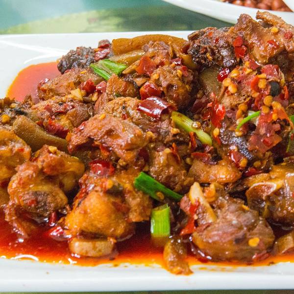 雷家豆腐圆子始创于1874年,做豆腐时,加入适量的盐、碱和香料、葱花等调料,充分拌匀后,捏成核桃大小的圆子,然后放在菜油锅内炸熟,这就是豆腐圆子。都说重庆四川无辣不欢,我看贵阳也是。你看这道菜,看起来就比较辣,不过非常下饭,一口气吃三碗!第一次见到油炸过的辣椒,刚开始不敢吃,看着大家吃了都说一点都不辣,于是尝了尝,果然,适合当饭后的下酒小吃。青岩猪蹄,是当地人都喜欢的食物糕粑稀饭,顾名思义,是由“糕粑”和“稀饭”组合而成的食品。其味芳香清淡,甜而不腻,健脾生津。我是不爱吃甜食的人,但也能接受它。贵阳靠近四川重庆,所以当他们来贵阳时不仅语言沟通无障碍,吃的也非常符合胃口。而我作为一个自小生长在江浙一带的人来说,本对这些口味太重的东西不太感冒,但是在贵阳的几天,我的味觉像是打开了新世界的大门一般,吃到根本停不下来,而且因为时间的关系,很多挂在贵阳人嘴上的美食都还没有尝到。