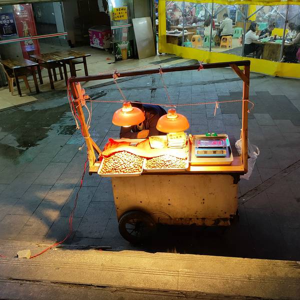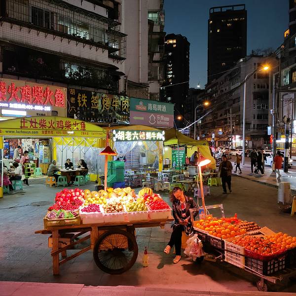 有一些卖水果的摊位,夜晚的时候摊主会打开昏暗的小灯,喜欢拍人文的小伙伴应该会容易出片