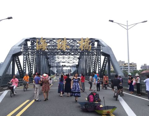 一座桥,见证了一个城的一段历史;海珠桥由于海珠广场升级改造封桥数月,终于通车了。通车前夜,闻讯而来的市民一拨一拨的汇集在桥上,抚桥追思,观景赏月,体验“大行其道”(车道)的感觉。