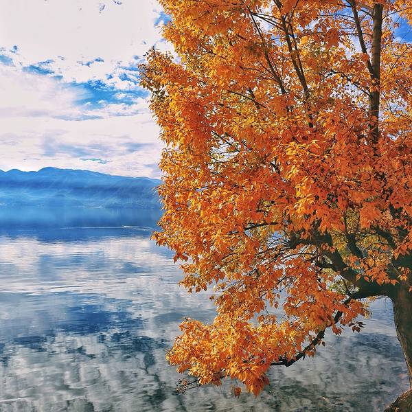 车子沿着湖边走,突然闯入两颗金黄满满的树,太美了!停车停车停车!两树相依,这才是情人树吧途径泸源崖~拍一张游客照试试光,意外的是我超喜欢这张,因为有点像我的女神,哈哈哈泸源崖的景~挺美,但是不好拍~