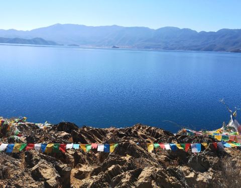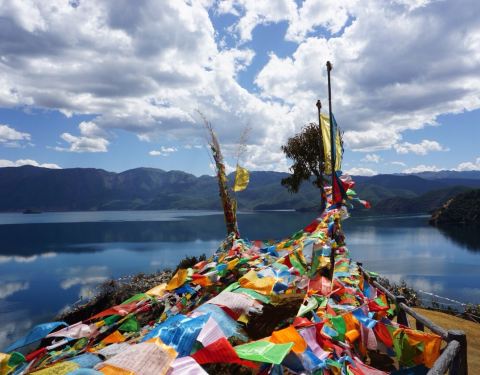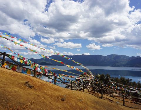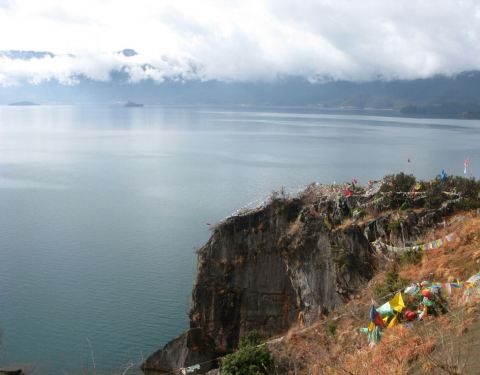 崖上有观景台可俯瞰泸沽湖美景,到处飘动的经幡也是这里一道美丽的风景泸源崖是泸沽湖地下水的出水口所在地,此处石崖如削,景观独特。崖上有观景台可俯瞰泸沽湖美景,到处飘动的经幡也是这里一道美丽的风景。
