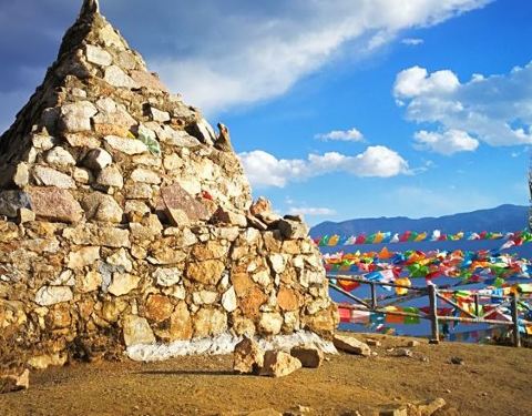 据说是泸沽湖的水源地,当地摩梭人在此建有白塔、玛尼堆,彩色的经幡散布四周,逢年过节族人都会来此...据说是泸沽湖的水源地,当地摩梭人在此建有白塔、玛尼堆,彩色的经幡散布四周,逢年过节族人都会来此祭祀、祈福,这里也是泸沽湖湖水最深的地方。