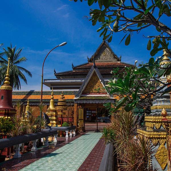 规模挺大,有僧侣,维护得很好,是本次看到的现代寺庙中建得最好的。游客不少,也有少数旅游团到访Preah Prohm Rath Monastery。 位于暹粒河西岸,老市场