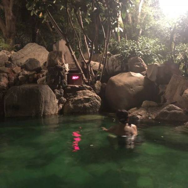 换好衣服我们就奔向温泉喽,感觉这里的温泉水天相接,画面很美,真的觉得自己词穷了湖泉温泉环境优美、处处鸟语花香,草木葱郁、空气清新,设施高档典雅,设有推拿、SPA、修脚、采耳等服务,同时建有舒适优雅的影视休息区。温泉共有泡池16个,分为迎宾池、云瑶池、碧空池、天籁池四个区域,山顶还...湖泉温泉环境优美、处处鸟语花香,草木葱郁、空气清新,设施高档典雅,设有推拿、SPA、修脚、采耳等服务,同时建有舒适优雅的影视休息区。温泉共有泡池16个,分为迎宾池、云瑶池、碧空池、天籁池四个区域,山顶还建有不规则游泳池1个。其中半山设有特色泡池7个,牛奶浴、苹果浴、玫瑰花浴等都会带来不一样的泡浴感受。平日60元/位、周末及小长假80元/位、黄金周128元/位;拿着宾馆的优惠券可以打折哦,很划算。我喜欢这里的浴室,空间很大、干净、无异味、冲澡的地方也很充裕,不用排队。浴室里面的柜子很多,每个柜子都有编码,也不用担心找不到自己柜子的编码,因为一进到浴室里面的服务员就会告诉你衣柜在哪里,然后给你拿拖鞋,很贴心的服务。吹风机也很给力,头发没多大会功夫就吹干了。换好衣服我们就奔向温泉喽,感觉这里的温泉水天相接,画面很美,真的觉得自己词穷了。每个浴池都被绿树环绕,可以遮着太阳,避免了暴晒。水很清澈,池子还时不时的飘着一股清香。都说红酒美容养颜,嘻嘻,我很喜欢这个热气腾腾的红酒浴,泡泡很舒畅。这会要是再来张面膜,多好啊。早知道就带来了,哎失误呀。 展开