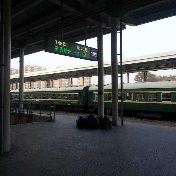 - 稍等片刻后立即坐上了齐齐哈尔至北京的T48,18:26分出发的全卧铺车,我们在中途的哈尔滨下车...