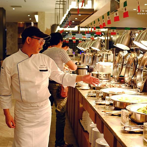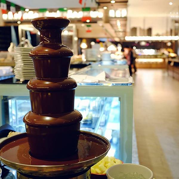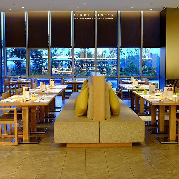 - 餐厅窗外就是泳池,好吃的多得吃不过来。这里还有一些促销柜台,我又买了几盒巧克力,哈哈哈