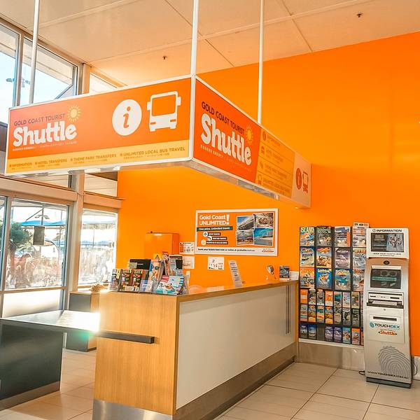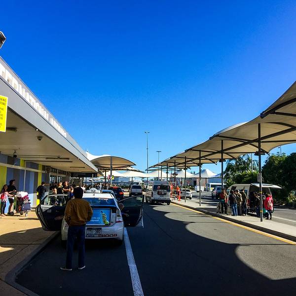 从机场前往市区可乘坐出租车或公共汽车。搭乘 700 路或 777 路公共汽车可以到达布罗德海滩南站(Broadbeach South station),然后换乘有轨电车G:link 到达市区,约为 1 小时,购买纸质车票费用约为AUD14.2,用 Go card 费用约为 AUD9.66,非高峰时段用 Go card 费用约为 AUD7.74。搭乘出租车约 40分钟,费用为 AUD65 左右。