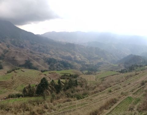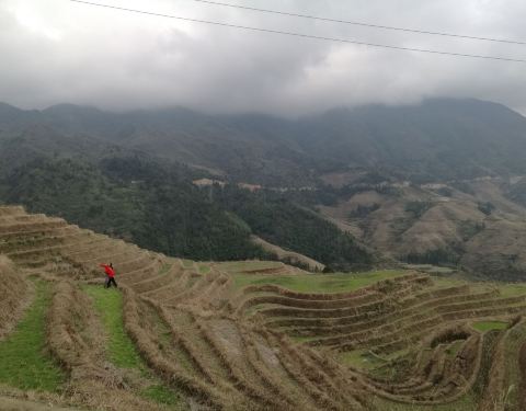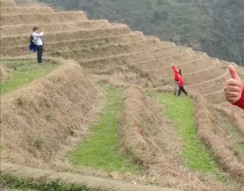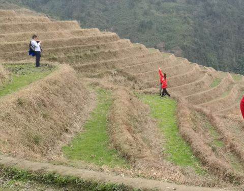 ...建于梯田中的壮家2 层木楼旅馆,位于2楼的房间十分简陋,只有一张木板床、一张小木桌和一盏小灯泡越往下田埂缠绕的范围就越广,形成气势恢宏、富有韵律的优美曲线,仿佛大自然的五线谱,正在谱写一曲农业丰收的交响曲。晚上入住建于梯田中的壮家2 层木楼旅馆,位于2楼的房间十分简陋,只有一张木板床、一张小木...越往下田埂缠绕的范围就越广,形成气势恢宏、富有韵律的优美曲线,仿佛大自然的五线谱,正在谱写一曲农业丰收的交响曲。晚上入住建于梯田中的壮家2 层木楼旅馆,位于2楼的房间十分简陋,只有一张木板床、一张小木桌和一盏小灯泡。厕所兼洗澡间在楼下,或说就在我房间的一层木板下,里面的动静房间能听得很清楚。 展开