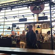 - 回程在机场逛好久,东西很多,还尝试了硬硬的三明治,喊名字来取,酷帅小哥们手作混合果汁奶昔
