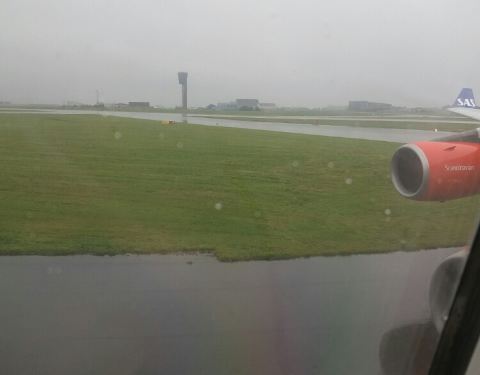 北欧四国行,小雨中飞机降落在丹麦的哥本哈根机场。