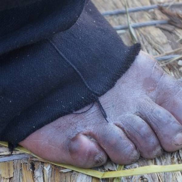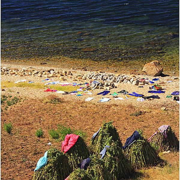 可是我观察到,"墙面"只有两层芦苇,很不保暖。然而晚上的湖面是那么冷,疑问到他们如何保暖。导游的回答确实:他们适应了高原的低温。也难怪,看到小孩子都是赤脚在岛上到处窜。男人们也赤脚去撑船。