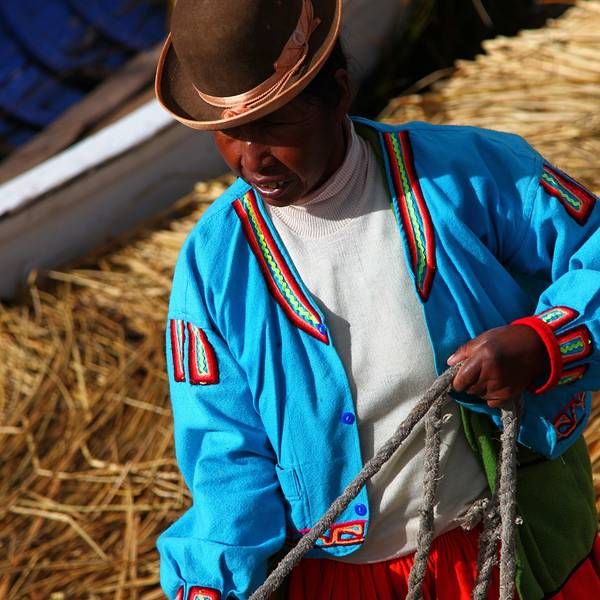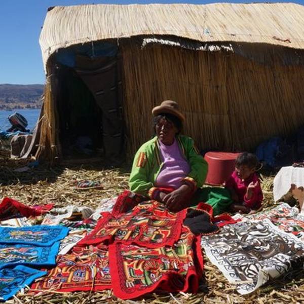 大约一个小时的行程,就看到了大片的芦苇和远远的一些黄色的屋顶,不一会儿船就开进了一个芦苇环绕的水域,边上一组一组的黄色房屋散布在湖面,这些就是Uros的漂浮岛了。每个漂浮岛由一层一层的芦苇编织而成,好几户人家居住一个岛上,岛上的房屋也都是由芦苇扎成,干了就成了一片黄色。为什么Uros人会在这里生活呢?据说几百年前Uros人怕自己的弱小部落被周围的强邻所吞没,开始了筑岛而居的漂浮生涯。他们靠打渔为生,孤悬于世外而得以自保,逃过了Aymara人的科雅王国,印加帝国和西班牙殖民者的控制。后来Uros人与Aymara人通婚,如今他们的后代还有几百人分住在几十个漂浮岛上,只是纯种的Uros人早已不在了,连语言也变成了Aymara语了! 展开