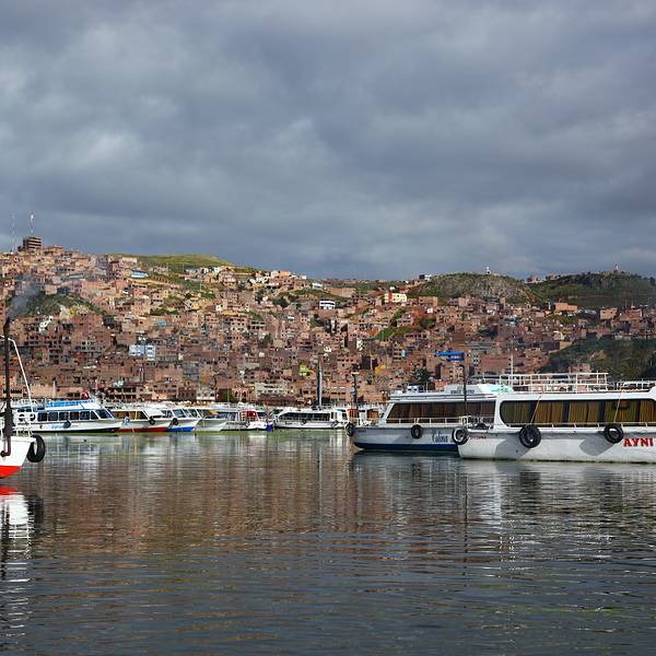早上7:00旅行社就有车到酒店来接丸子和玫瑰了,到了码头,湖面上空的阴云越来越黑,湖面也完全没有令人惊喜的蓝色,灰暗无光,看来这次的圣湖之旅会有些小失望了!的的喀喀湖一日游的行程主要是参观湖中两个小岛,一个是漂浮岛(Uros),还有一个是塔基利岛(Taquile)。