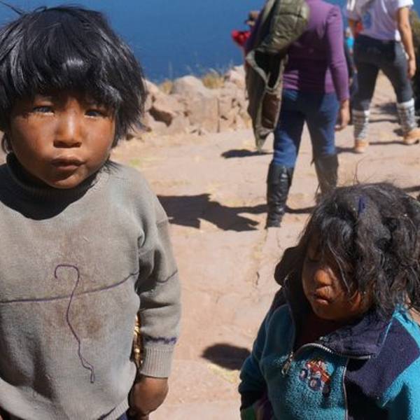 这里的景色迷人。多么让人心疼的孩子。这是他们加园子的合影。这个岛上的男士们要亲手为自己编织帽子,腰带7月13日,Puno Day 2, Titicaca湖,跟团游第二天