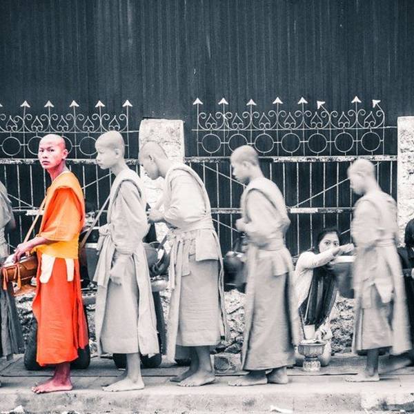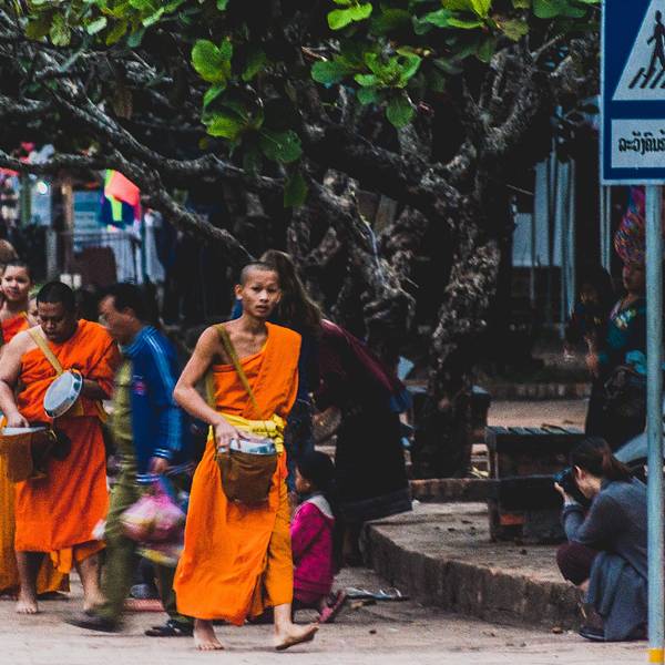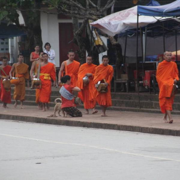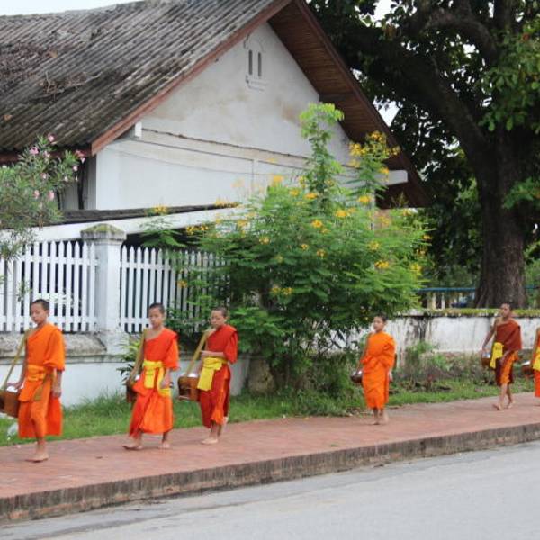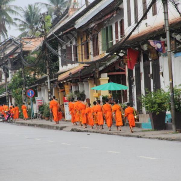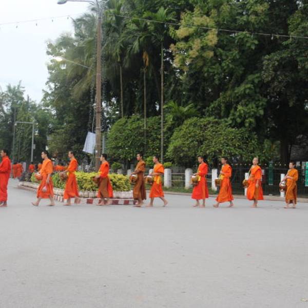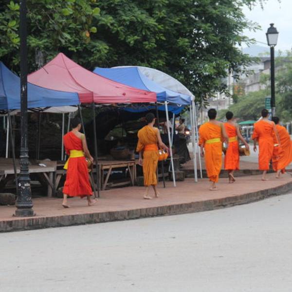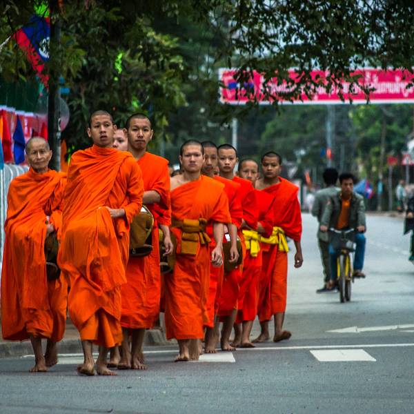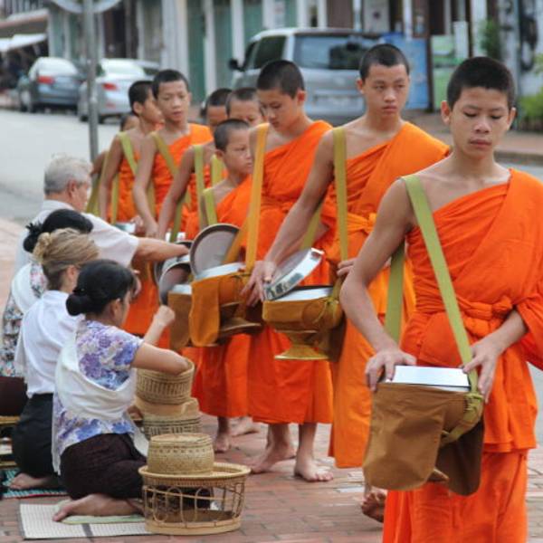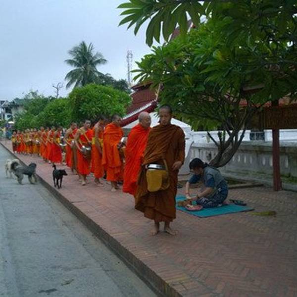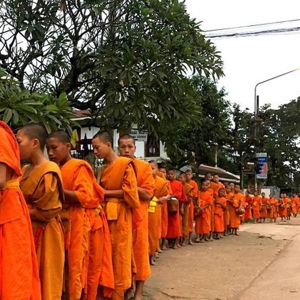 琅勃拉邦人信奉上座部佛教,每天早晨,城中大小寺院的僧侣们会排着有序的队伍在长老、住持的带领下接受每天一次的布施。