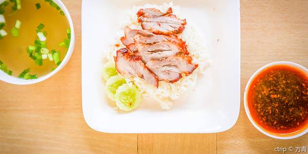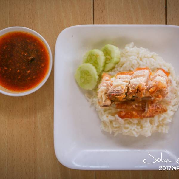 今天刚去吃完,我们点的炖猪肉饭3份和海南鸡饭一份,客观的评价一下: 1、炖猪肉饭大份60泰铢,小份50泰铢,猪肉饭特点猪肉炖的挺软烂,但是口味偏甜,上面倒上店家提供的酱汁,整体口味都偏甜,其中一个朋友吃不...今天刚去吃完,我们点的炖猪肉饭3份和海南鸡饭一份,客观的评价一下: 1、炖猪肉饭大份60泰铢,小份50泰铢,猪肉饭特点猪肉炖的挺软烂,但是口味偏甜,上面倒上店家提供的酱汁,整体口味都偏甜,其中一个朋友吃不惯,没怎么吃。 2、海南鸡饭,鸡肉也是炖制的,但是酱汁偏辣,其中一个朋友说有芥末的味道和口感 总结来说,美食就是仁者见仁智者见智,我们会觉得并没有很多美食榜,美食节目推荐的那么好吃。