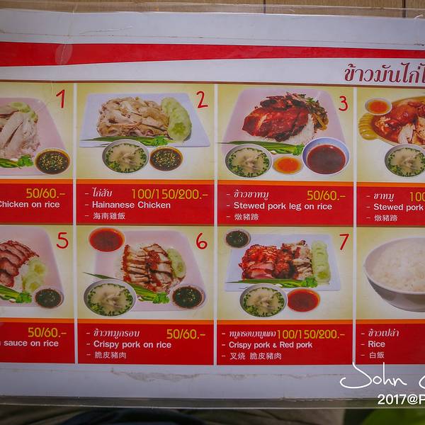 点单十分方便,菜单上有图片和编号,还有简单的中文。招牌 海南 鸡饭自然是肉嫩饭香,配小碟蘸料。 泰国 的鸡质量大多不相上下,每家店靠的是独门蘸料,这家在吃过的里面算不错的,没 华欣 好,比 曼谷 佳。