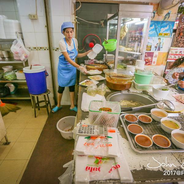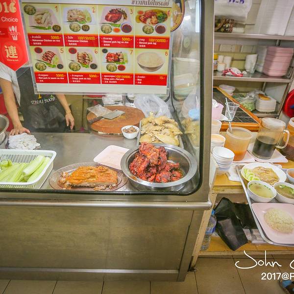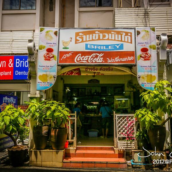 门脸小的我们仔细的寻找还是走过了头,两大人2孩子,点的2份鸡饭跟一份猪脚饭,结果2岁的娃把一份米饭吃了精光,米饭好像拌了鸡汤,好吧!加了一份芒果糯米饭,第一次吃太好吃,芒果又嫩又甜口感糯米饭软糯可口,...门脸小的我们仔细的寻找还是走过了头,两大人2孩子,点的2份鸡饭跟一份猪脚饭,结果2岁的娃把一份米饭吃了精光,米饭好像拌了鸡汤,好吧!加了一份芒果糯米饭,第一次吃太好吃,芒果又嫩又甜口感糯米饭软糯可口,咸甜椰汁口味也不错德,反而觉得猪脚肉有一点点腻,可能不爱吃油腻的关系,鸡饭,白煮鸡肉清淡味道可以沾店里配的2个口味的酱,奶茶味道中规中矩冰块尤其多,店里热喝一口过瘾,鸡肉中份,大份各一,猪脚小份,米饭4碗,芒果糯米饭一份,奶茶一杯,635泰铢