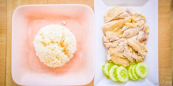 海南鸡饭的鸡肉都是鸡腿肉,很嫩而且汁水很多,酱料的话淋上点或者拿鸡肉蘸着吃,拌着吃就容易悲剧了。