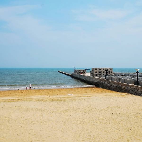 日照万宝滨海风景区是沙滩绵延平缓,柔软细腻,海水温净碧透,浪软如毯,水质清新晶莹,是夏天避暑、嬉水、游泳、健身的最佳去处。