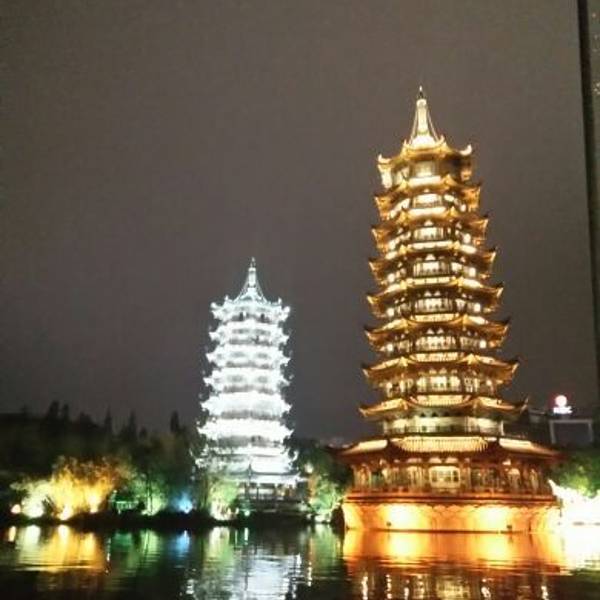 金骆驼 选取一个岩洞和几个名山走走在桂林是必须的,七星岩、芦笛岩、象鼻山、伏波山、独秀峰和叠彩峰都是桂...早上睡到自然醒,经过三天游玩,说老实话人已经有点累了,全家梳洗完毕,早饭结束,办理酒店退房,预约了“滴滴专车”从阳朔直达桂林市区,将近60公里路程才150元,比我想象中方便快捷多了,如果从阳朔北站购票回...早上睡到自然醒,经过三天游玩,说老实话人已经有点累了,全家梳洗完毕,早饭结束,办理酒店退房,预约了“滴滴专车”从阳朔直达桂林市区,将近60公里路程才150元,比我想象中方便快捷多了,如果从阳朔北站购票回桂林需要将近30元一个人,还要提着行李跑里跑外的,如果三四个人算人头的话,专车还是划算的,我们在桂林入住了老字号的“漓江大瀑布饭店”,酒店就在漓江边上,方便晚上散步看夜景,这酒店有广式饮茶,点心还可以,午饭我们就在这解决了,十几笼的点心才150元,还算可以吧。说起桂林的饮食,其实没有什么具体的地方特色,菜式也没有什么突出之处,桂林米粉算是他们的特点,啤酒鱼和啤酒鸭之类算是地方特色菜,但整个城市不管哪个角落基本就是这几味菜式,也说不上那个才是正宗地道的做法,几家大的连锁店据说味道都不怎么样,感觉好吃的桂林米粉都是在小米粉店尝到的,几块钱就一碗,饭店的菜跟广州美食之都没有可比性,广州人到桂林游玩在吃的问题上只能将就下就可以了。