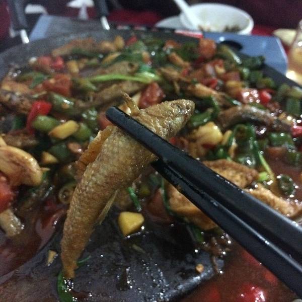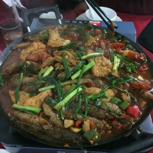 晚上熊姐推荐的一家饭店,点了一斤杂鱼,一个腊肉笋干,一个青菜。黄焖杂鱼新鲜好吃,每一条都处理过,腊肉够味,笋干新鲜,青菜好吃到无语。 展开