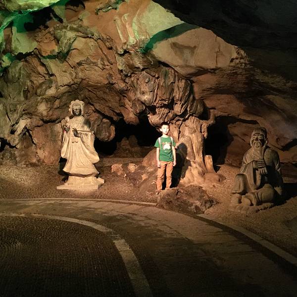 洞里的景观无非是这种附会,没仔细听讲解,唯独这个桃园结义,还真挺像那么回事的七星岩真的很大,入口都能开大会了。 洞里的景观无非是这种附会,没仔细听讲解,唯独这个桃园结义,还真挺像那么回事的。 洞里大的能摆摊,好凉爽。