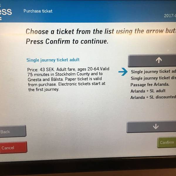 来 斯德哥尔摩 看地铁站已经成为这地儿的旅行项目了,所以就机器上买了单次票37 SEK 瑞典 克朗但是,插曲来了