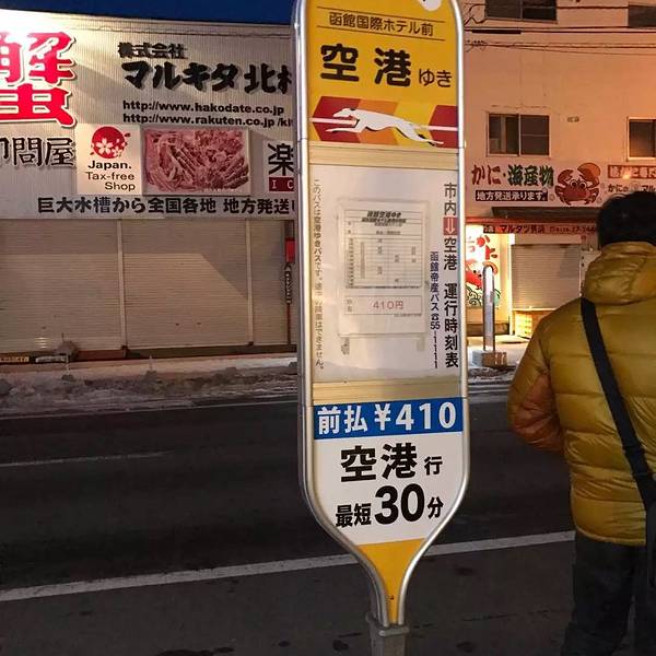 从函馆到机场有机场巴士,离我们住的酒店最近的站点是在函馆国际酒店门前,离我们住的酒店步行五分钟就到了,出门向左直走过一个红绿灯就到函馆国际酒店。这个巴士有好几个站点,JR站也有,其他的站点我都不清楚,不知道叫啥,可以地图看一下,巴士有人会帮放行李,上车付钱就行啦!大概半小时左右就到函馆机场了!