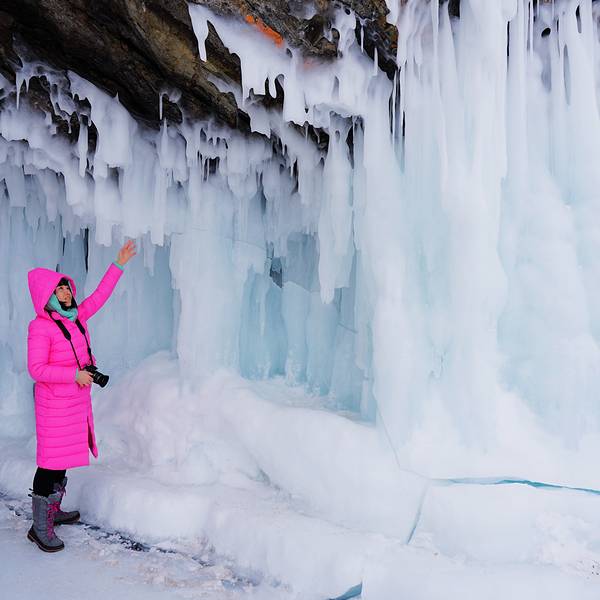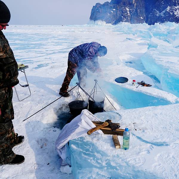 奥尔洪岛北线主要是看蓝冰,岛上每一家住宿的酒店、民宿都有提供北线游览服务,当然不是每家店都会自己派车,大部分是拼车,车子会到各家酒店接人,提供点对点服务。车子一路开出来,最先到达的是一个冰洞,厚厚的冰挂有的像琉璃很有质感,有的又像水晶晶莹剔透。路上大概还会再停个3、4个点,蓝冰和冰洞穿插,线路安排是渐进式的,冰冻一个比一个壮观,冰花一次比一次漂亮,所见的蓝冰也是越来越蓝。这样的线路安排每次停车都有小期待,确实很不错。奥尔洪岛北线以哈伯伊角最出名,也是整个线路的精华点,这里的蓝冰最蓝最晶莹,蓝冰和岩石都很壮观。放眼望去,天空给这片冰晶透明的湖面镀上了荧光蓝色,深深浅浅地无限延伸,这是一种难以言喻的壮阔,相当令人难忘。有人专门精心打扮带了汉服来拍照,偷拍了两张,在一大群穿着笨重的人当中,有个不畏严寒打扮得漂漂亮亮的人真是赏心悦目。司机兼导游会在篝火上烹饪鱼汤。回到村里正好赶上日落,一个人拎着相机闲逛,正好遇到在拍拨水照的,帮人家拍了成功的,别人帮我拍的没成功。 展开