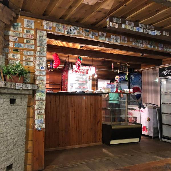 找到一家看起来算大的餐馆,可能是过了饭点,店里并没有人。从收银台墙上贴满的世界各地的纸币,看出来这家店生意应该不错,看来味道肯定可以。