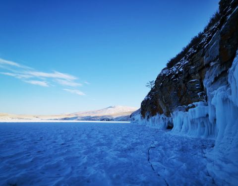 回到村里正好赶上日落,一个人拎着相机闲逛,正好遇到在拍拨水照的,帮人家拍了成功的,别人帮我拍的没成功贝加尔湖蓝冰最佳时间是3月份。每年的1月至5月是贝加尔湖的冰封期,湖面冰层最厚超过一米。