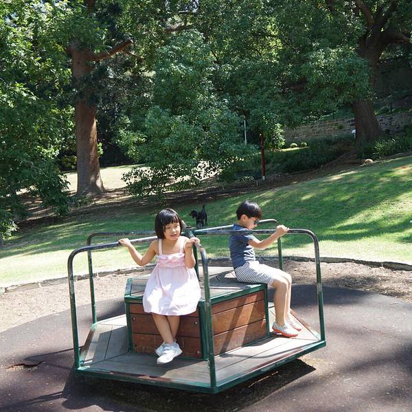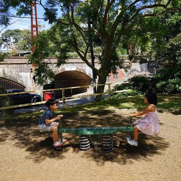换个角度看悉尼港 😊 从Blues Point到餐厅的路上有个小公园,两娃又屁颠屁颠地玩起来了~