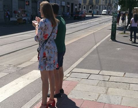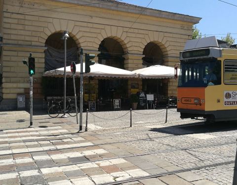 在porta venezia坐电车到porta genova下车。