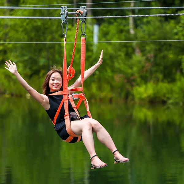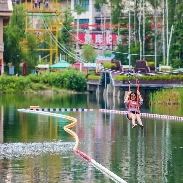 从套房假日酒店向外望去那一片碧绿的水面便是佛库伦湖了。我们先去体验了湖上索道项目,小伙伴们都不太敢上,我是第一个上去的,坐上去的一刹会有些害怕,但是滑下来的时候才发现其实很平缓。到对岸乘坐小船游于...