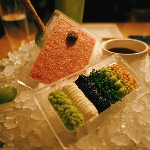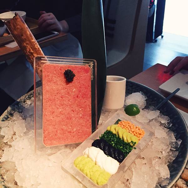 地址:88 10th Ave, NY 10011 非常fancy的店,上下两层很气派。因为大部分日本店都很袖珍,藏在各种角落中。而Morimoto开在Chelsea十大道的路边,特别容易找到。 每桌必点的一定是Toro Tartare,搭配鱼子酱和6种不同的酌料,从容器上挖着吃,还蛮新奇有趣。刺身拼盘有三种,我点过最多的那个,摆盘跟国内的日料很相像,怎么说呢?华丽! 可以建议女生去他们的洗手间么?哈哈哈。他们家的洗手间真的是……梦幻!整体装潢风格就是非常现代,跟客家山比较类似,感觉不能允许自己穿Tshirt去。 虽然这家店我去过很多次,但有一次堪称难忘。也是跟思源,去的时候旁边坐了一对情侣,男生一直在哭,女生一脸冷漠。因为坐的很近,真是让人很尴尬啊~