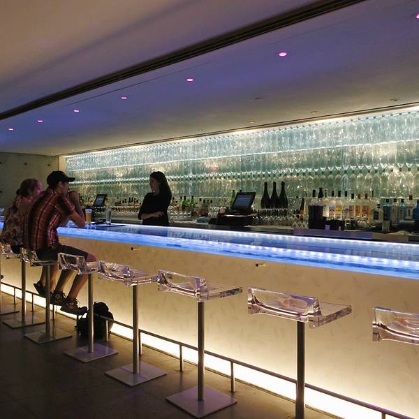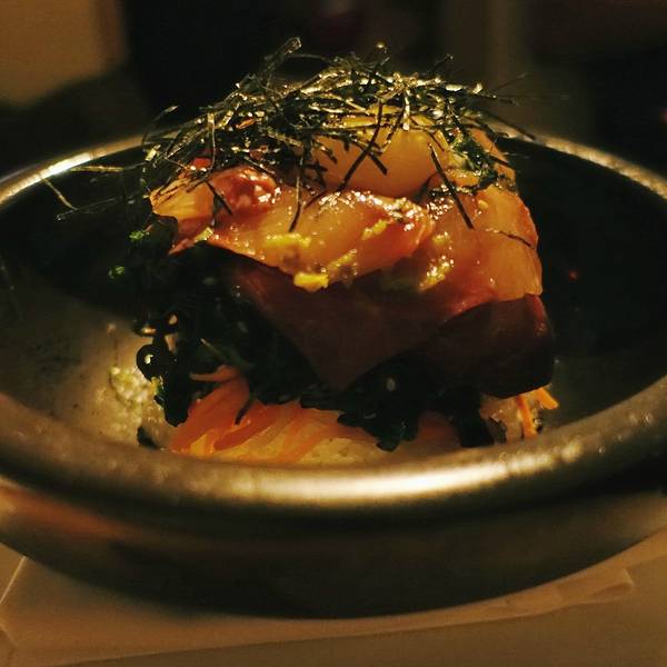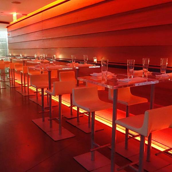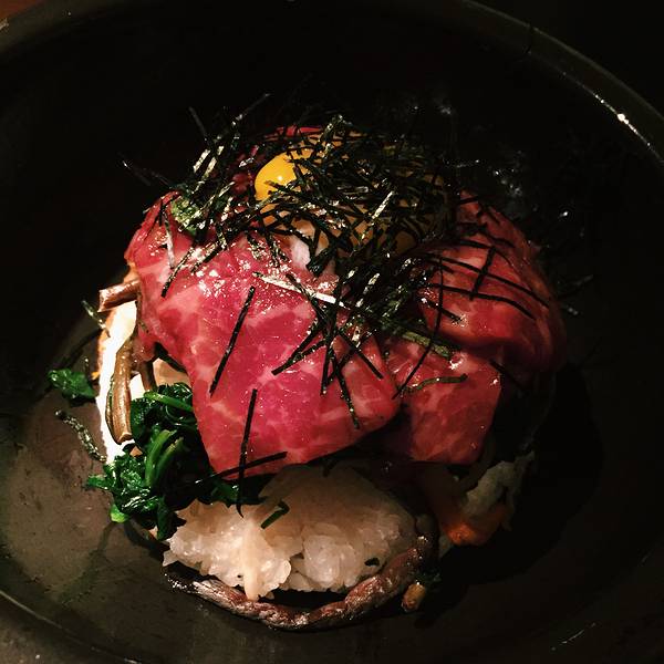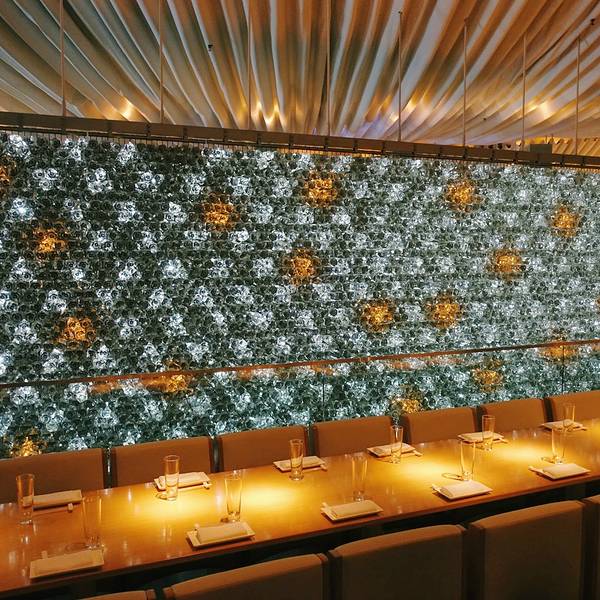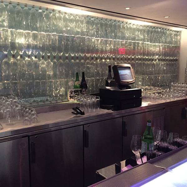 位于纽约城highline下的日本餐厅Morimoto来头不小,主厨是美国厨艺真人秀Iron Chef的参加者Masaharu Morimoto(森本正治),在东京拥有自己的米其林餐厅,设计师则是大名鼎鼎的安藤忠雄,值得专程前往朝圣。走到餐厅附近,愣是往返了几个来回都错过了门口,全因太低调。不仅没有任何餐厅标识,现代的玻璃门轻易让人误认为这里是办公空间,门口高调飘扬的红色门帘,也能把这里伪装成剧院。深入了解后才得知,门帘灵感来源于日本传统的暖簾,也是餐厅独特的门牌号及纹章。餐厅的内部将日式的简朴和新潮的华丽结合地恰到好处,木质桌椅和波浪形的天花板充满了自然感,但引人注目的银墙却夺人耳目。走近一看,原来是高端矿泉水天龙水的瓶子构造而成,创意满分。餐厅有两层,一楼为用餐区,华丽炫目却又不失简洁大气。地下一层则是较为迷幻的酒吧,红色灯光与银墙让视觉震撼力更上一层。洗手间里也是充满巧思,隔间背板的樱花玻璃美得让人移不开眼。用心的环境并没有导致食物的丝毫懈怠,Morimoto虽然称不上是纯正的日本菜,菜单上的不少选择都是主厨擅长的用西式食材打造出的新式日本料理,但出品绝对是一流的。最为推荐toro tartare,吞拿鱼腩打成细腻的质地,上面点缀鱼子酱,奢华鲜美,最绝的是配的酱料,芥末、酸奶油、紫菜酱、青葱、豌豆泥、脆黄豆,各式口味和质地混合在一起,在嘴里融合成绝妙的组合。主菜的ishi yaki buri bop把池鱼刺身放在炙热的石锅之中,呈上桌后,在顾客眼前把鱼肉、米饭和酱汁混合均匀,冒着热气的饭夹带着微焦酥脆的米粒以及柔嫩的鱼,层次丰富。用美好的甜点结束一顿,就心满意足了~人均: 100美元 周边景点:高线公园(High Line),切尔西市场(Chelsea Market),互动戏剧场Sleep No More