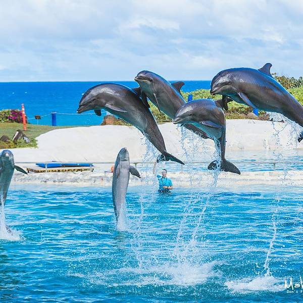 游完泳后,还可以观看精彩绝伦的海豚表演。说真的,和海豚互动真的是一件乐趣十足的事情,