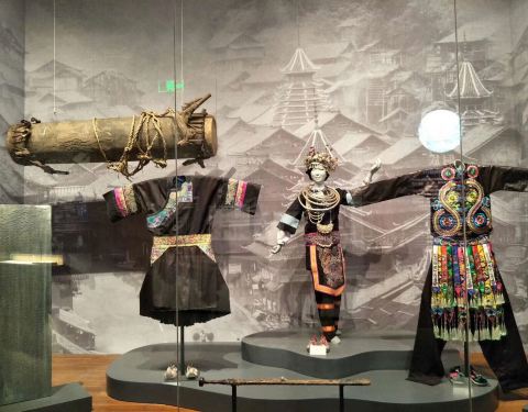 可看到贵州各个少数民族的服饰、工艺品、农具家具等实物展示。