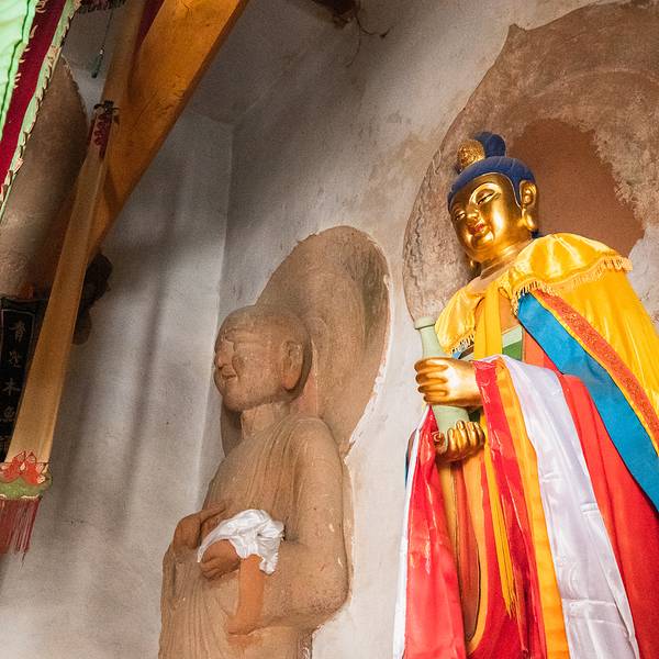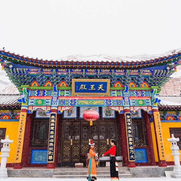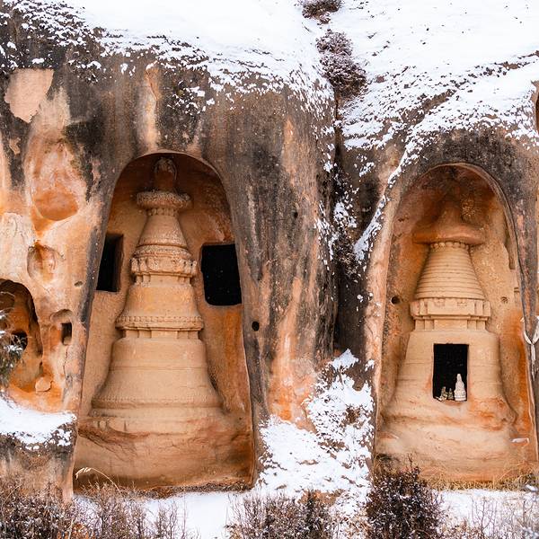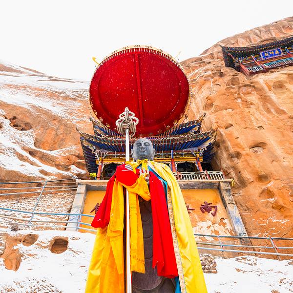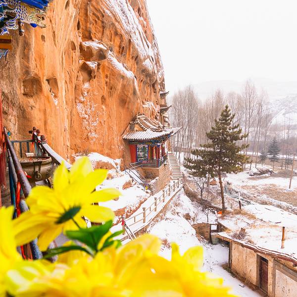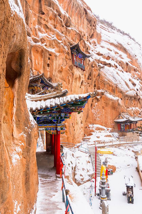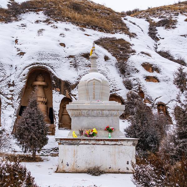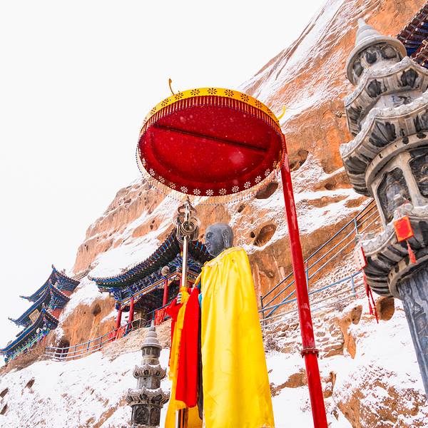 但在建筑型制上还是中国传统的对称格局,以大雄宝殿为中心,南边是单洞的观音殿和三层的三圣殿,北边...当穿过一座三门五楼样式、气派十足的门楼进入马蹄寺,沿着进门大道前行很快就到了千佛洞。千佛洞是开凿于绝壁上的石窟,也是马蹄寺的第一个景点。有人说,冬是马蹄寺最美的季节,寂寥冬日彰显马蹄寺苍凉悠远气质...当穿过一座三门五楼样式、气派十足的门楼进入马蹄寺,沿着进门大道前行很快就到了千佛洞。千佛洞是开凿于绝壁上的石窟,也是马蹄寺的第一个景点。有人说,冬是马蹄寺最美的季节,寂寥冬日彰显马蹄寺苍凉悠远气质。冬雪过后,马蹄寺化作一幅泼墨挥毫浓淡相宜的中国山水画,雪山、松林、白塔、崖壁上的石窿是亘古不变的主题,拥有着穿梭时空的力量,带来远古禅唱和不变的希望。雪中的千佛洞化作了极乐净土,那朱红色的门、雕花的门楼、一进进斗拱飞檐的院落、绝壁上的石窟是冰雪世界里最精致的水墨元素。千佛洞摩崖佛塔窟龛,大部分雕凿于元、明时期,千佛洞泛指洞窟数量多,名字因此而来。寺院建于东晋十六国北凉时期,在元代的时候是藏传佛教寺院,现在是汉传佛教寺院。从远处看,千佛洞崖壁上布满了大大小小的佛龛,遥想当年应该是每个龛里有一尊佛像,这大概是“千佛”的名称由来。千佛洞分南、北、中三段。北段石塔林立,形态各异,年代久远,有些只留塔迹,半露半隐。由于石塔全部开凿在窟龛之中,虽经千年沧桑,风雨侵蚀,有的仍然色彩鲜艳,线条分明,异常醒目。最早的塔可能凿于北魏、北凉或更早的时间,也有唐、宋、西夏、元、明不同朝代的,有些塔十分精美和完整。中段众多的石窟经过了修缮和加固,使昔日残破不堪的石窟寺庙修茸一新,恢复了以往辉煌雄姿,观音殿、地藏殿六大石窟和大经堂等三大建筑,全部恢复了旧貌。千佛洞的石窟和佛像有些为盛唐时的杰作,6号窟的佛像面型丰满,体态端庄文雅,站于两旁的阿难、迦叶形象逼真,听法讲经,神态各异,一个侧耳细听,全神贯注,一个面带思索,在沉思什么,神形兼备,不同的眼神,富有表情的脸型,显示出不同的性格与年龄,其衣纹线条流畅,质感极强,专家称为“具有雄伟健实气魄的唐代杰作”。千佛洞虽然在峭壁上开窟,但在建筑型制上还是中国传统的对称格局,以大雄宝殿为中心,南边是单洞的观音殿和三层的三圣殿,北边是与南边相同的单洞的地藏殿和被称为8号窟的三层石窟。 展开