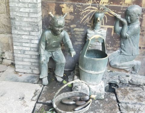 白天热闹,池子旁,有两个吊桶,孩子们放下去,盛满,再拉上来,游人有的接水喝