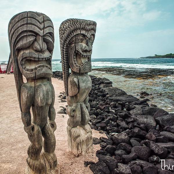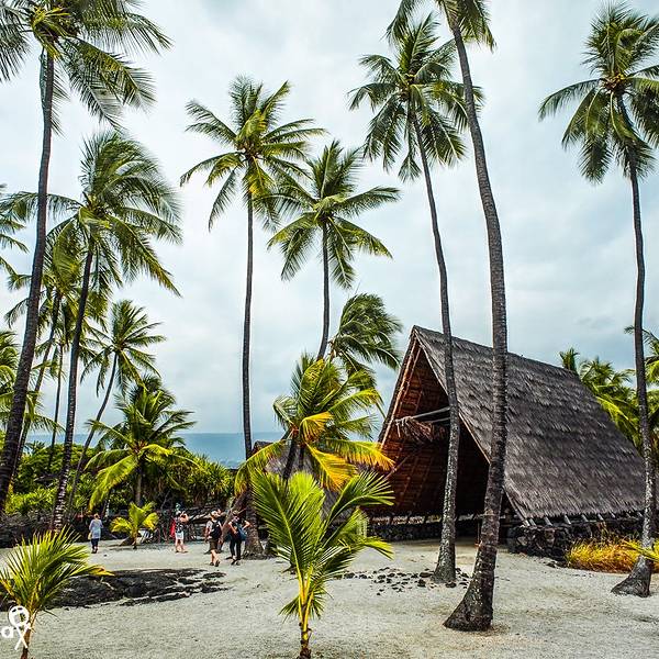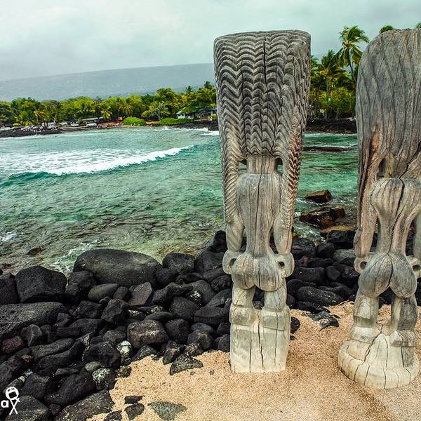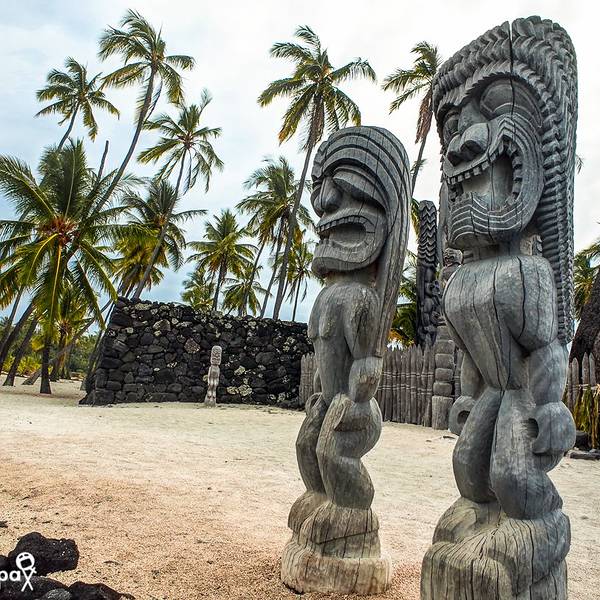 Puuhonua o Honaunau国家历史公园位于夏威夷大岛可纳的Honaunau湾,是了解夏威夷文化的重要地方,占地180英亩(0.7平方公里),曾经是大岛的罪犯流放之地,海边有两个夏威夷标志性的木雕人像,一张哭脸一张笑脸。