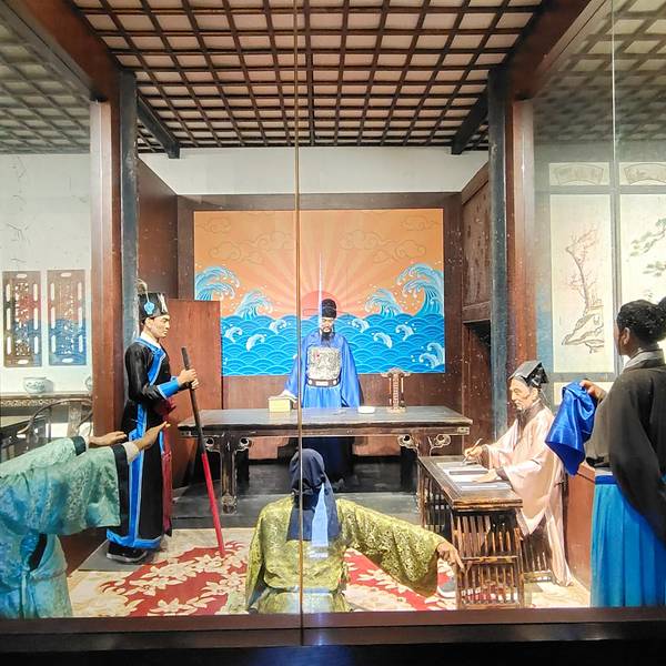 高配的五品县衙,后面有个小花园,编钟表演有个味道!