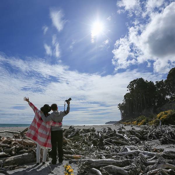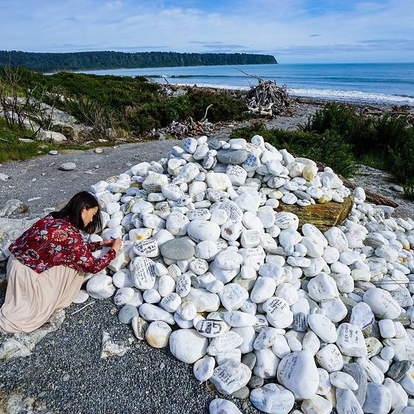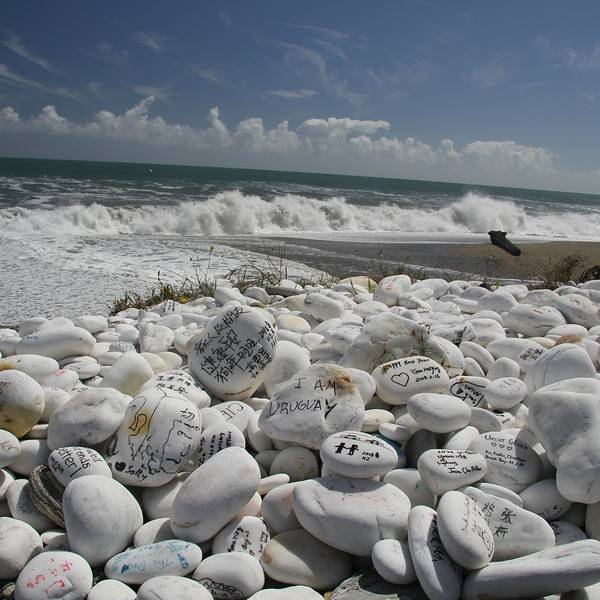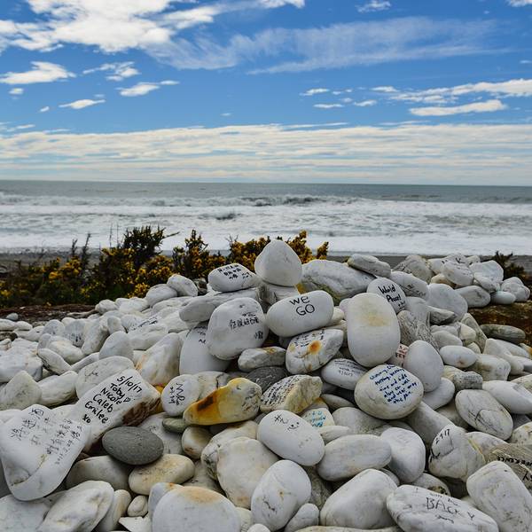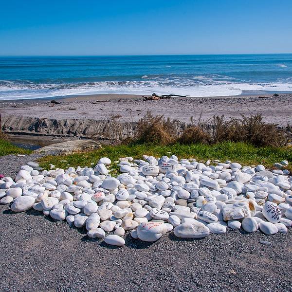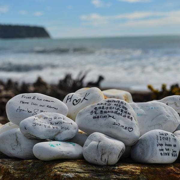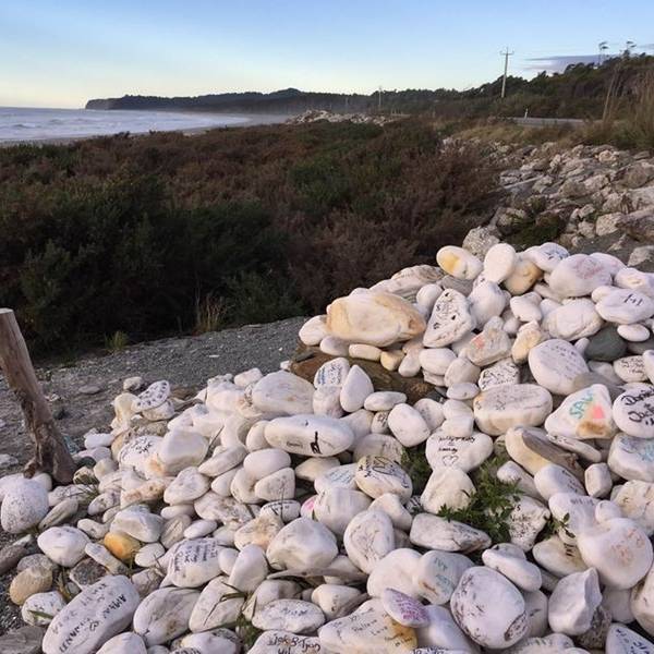 首先经过的景点是Bruce Bay,这片被评为NZ TOP10最受欢迎的海滩,最吸引人的就是这一堆堆写满各种爱意的白石头。我们当然也不能免俗的找一块大大的留下墨宝。 展开
