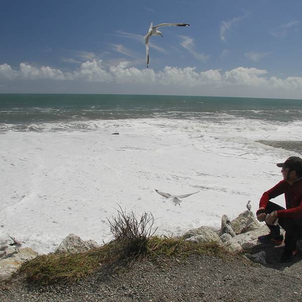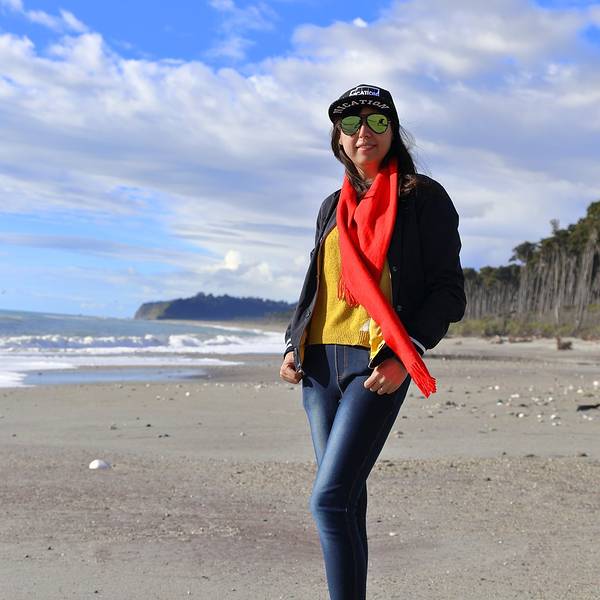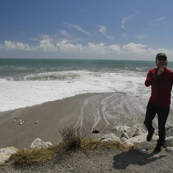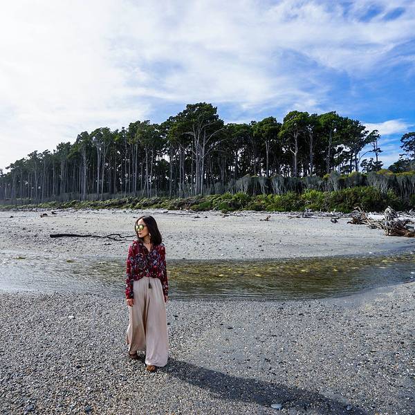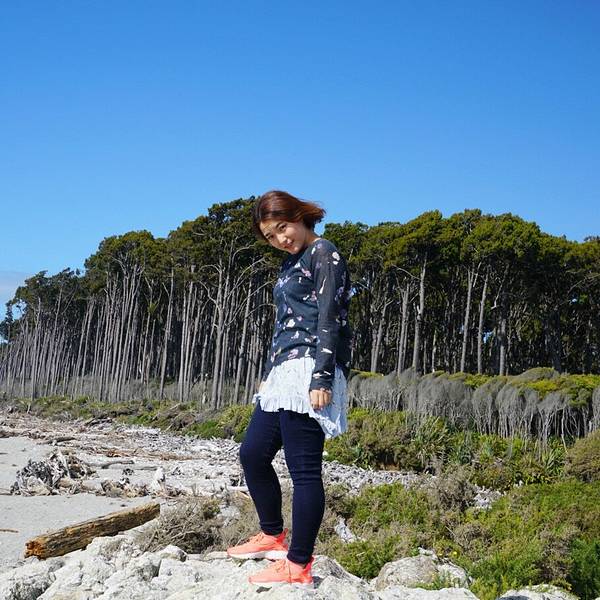 我在长长的沙滩上拍照,而月亮却在车里忙着补妆海岸边的白色鹅卵石上面被旅行者写满了各种各样的话语。无数写满字的鹅卵石堆在一起记录了来来往往人们的心路历程,或者有思念,或者有憧憬,或者有表白,或者有祝福。沿着海岸边的小路,可以看到旁边高大的树木被常年强劲的海风塑造成了风的形状,依然顽强的生长着,和这些树一起顽强生长的还有西海岸这边特有的生物-沙蝇,我们走一路就跟我们一路。还好买了沙蝇药喷在身上,被这种不起眼的小虫子咬了以后会起一个红点,奇痒难耐,要两三个月才会消退,所以要去西海岸的同学切记买沙蝇药,沙蝇药,沙蝇药,重要的事说三遍。补完妆的月亮闪亮登场,却因为沙蝇坚持不到3秒,又回车上把自己裹了严实。再怎样,还是要酷酷的来一张。Bruce Bay 向前开不远,在路边有一家叫Salmon Farm Cafe 的三文鱼农场,里面有几个大池子,养了巨多的三文鱼。其实这里我感觉一般,如果你抱着国内农家乐那种期待,那还是别去了。我和月亮买了一小盘,坐在阳光下晒太阳吃着新鲜三文鱼休息,也是非常不错的。 展开