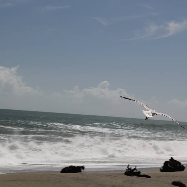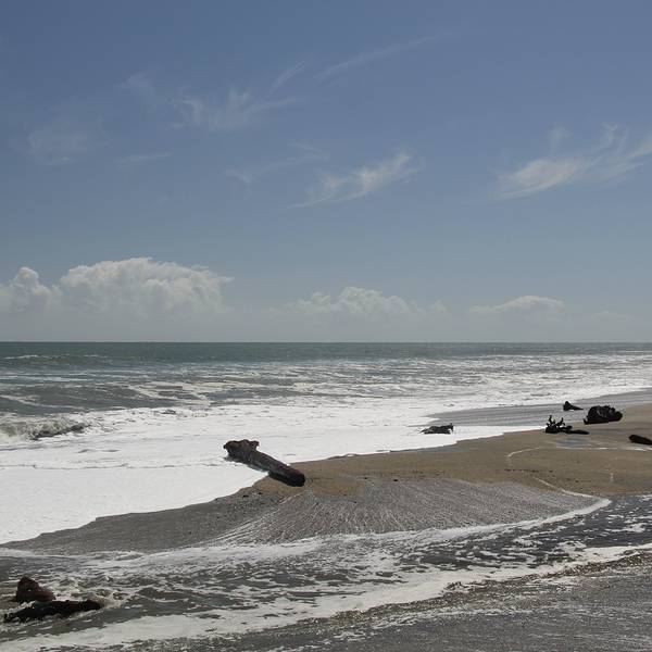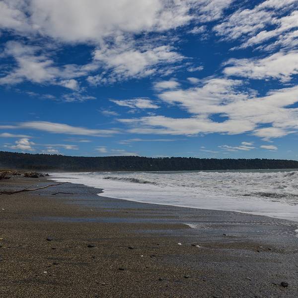 平复了一下心情后,看了看时间大概下午2点~~查了下导航,从约瑟夫冰川开到瓦纳卡将近300公里,按照房车每小时最高90公里的速度,路若是赶上不好走的话又得晚上见了~所以收了收激动的心情就上路啦~~沿途路过福克斯小镇时,瓢泼大雨袭来,看见这雨我们5个人可嗨了~~~庆幸定的是弗朗兹冰川的雪降,一切都是天意,仰天长啸哈哈哈~~因为兴奋过头,导致前期做的路线规划忘记了,中途应该经停下布鲁斯贝,看一下10大最佳海滩~~~之所以题目起名叫转角遇到布鲁斯贝,是因为从山里开出来,看了一路的雪山、植被,在你脑海里已经形成了固定的镜像,哦,原来新西兰就是白皑皑的雪山和绿色的平原。但是当你一转头来到西海岸线的时候,你又会被这多变的风景所吸引和震撼。眼前的画面可以说是画风一转,你还没来得及思考,就看到了大海扑面而来~~来不及反应这是哪儿,冲动的让你只想靠边停车,在这里停留~看了看地图,这是哪儿啊这么美,才发现原来这里就是布鲁斯贝啊!!!急冲冲地下车迎接海浪!!!这儿的海滩之所以美,是因为给人一种自然和原始,而非人造沙滩那种平整和谐。放眼望去,海滩不单调不枯燥,既有新鲜的嫩绿植物,又有被海水冲刷的枯木;既