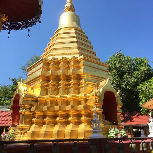 Wat Phan On建于兰纳风格文化艺术繁盛时期的1501年,在Wat Phan On寺庙的西边有另一座叫Wat Chedi Khwan的寺庙,与Wat Phan On同时期建造,后来将这两座寺庙统称为“Wat Phan On”。色彩比较鲜艳红白黄三色为主,简单大体的风格。