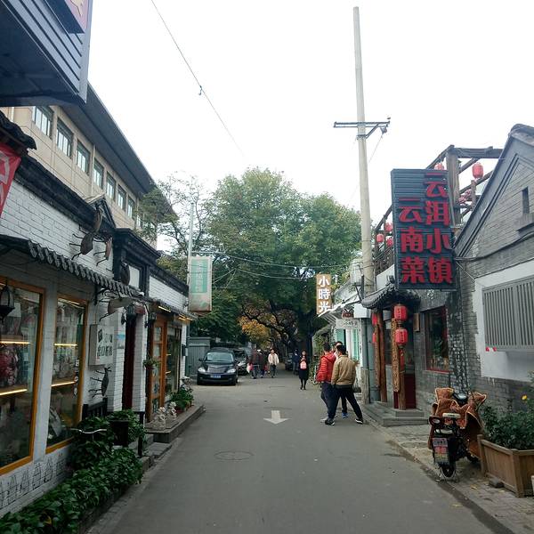 早在七八年前,我和朋友很爱来这里一家名叫米店云南餐馆,店内的回头客很多,我们每次一座就是一下午,来这里吃饭的人都不赶,几盘菜、一壶酒就可以度过周末生活。可惜后来因为经营管理等问题,米店结业大吉,我也就很少来了。最近和朋友逛什刹海,又来到这里,一切都没怎么变。对面的南锣鼓巷越来越热闹,它们是鼓楼东大街两条有交集却格格不入的两条胡同。